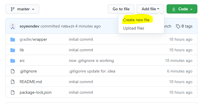 Create new file 해서 로컬에서 git pull해서 파일을 수정하고 다시 push해주거나