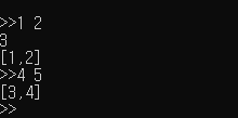 printf("[%d,%d]\n>>", a, b);