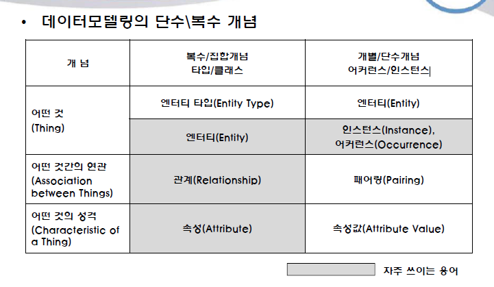 영속적으로 존재하는 인스턴스의 집합이어야 한다.(‘한 개’가 아니라 ‘두 개 이상’)