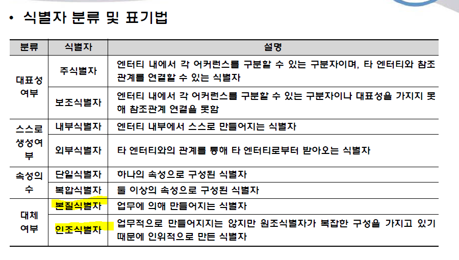 식별자의 속성의 개수가 많은경우 인조식별자를 생성해서 데이터모델을 구성하는 것이 더 좋은 방법이다.