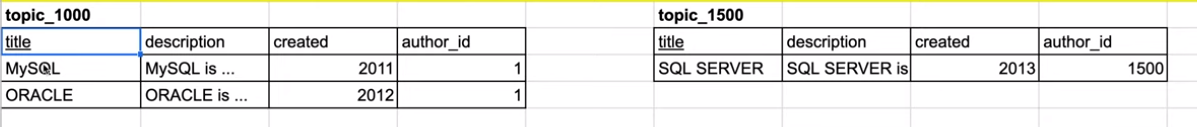author_id가 1~1000 이라면 topic_1000테이블에 author_id가 1001~1500이라면 topic_1500테이블에 넣음