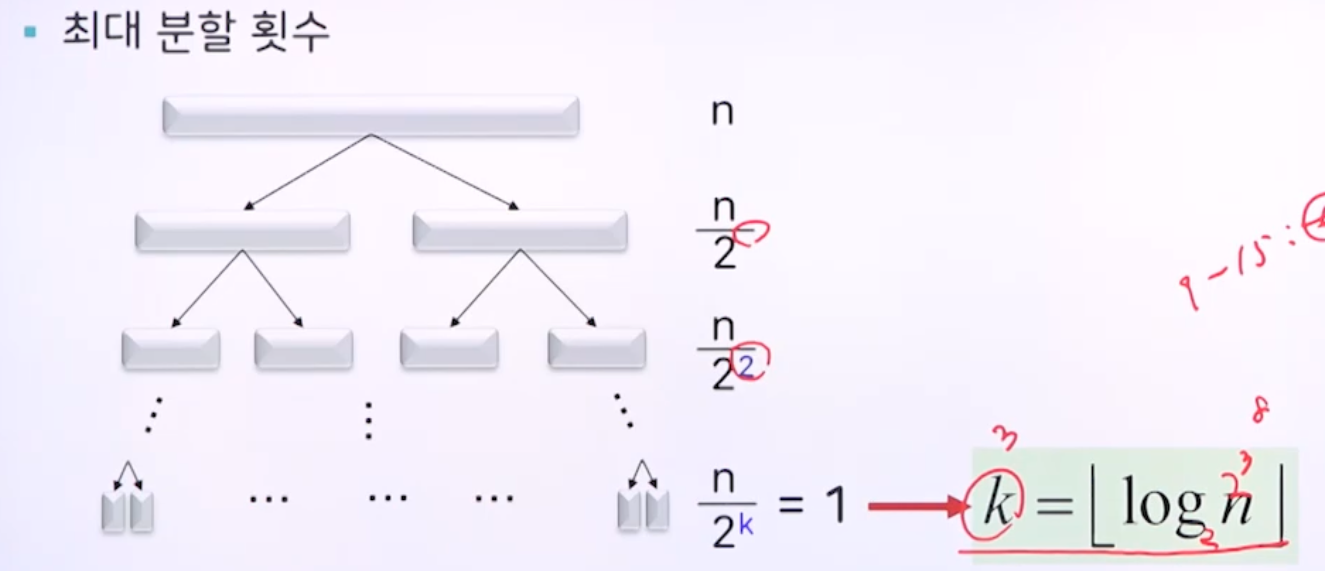 - 최대 비교 횟수 -> "최대 분할 횟수 + 1"