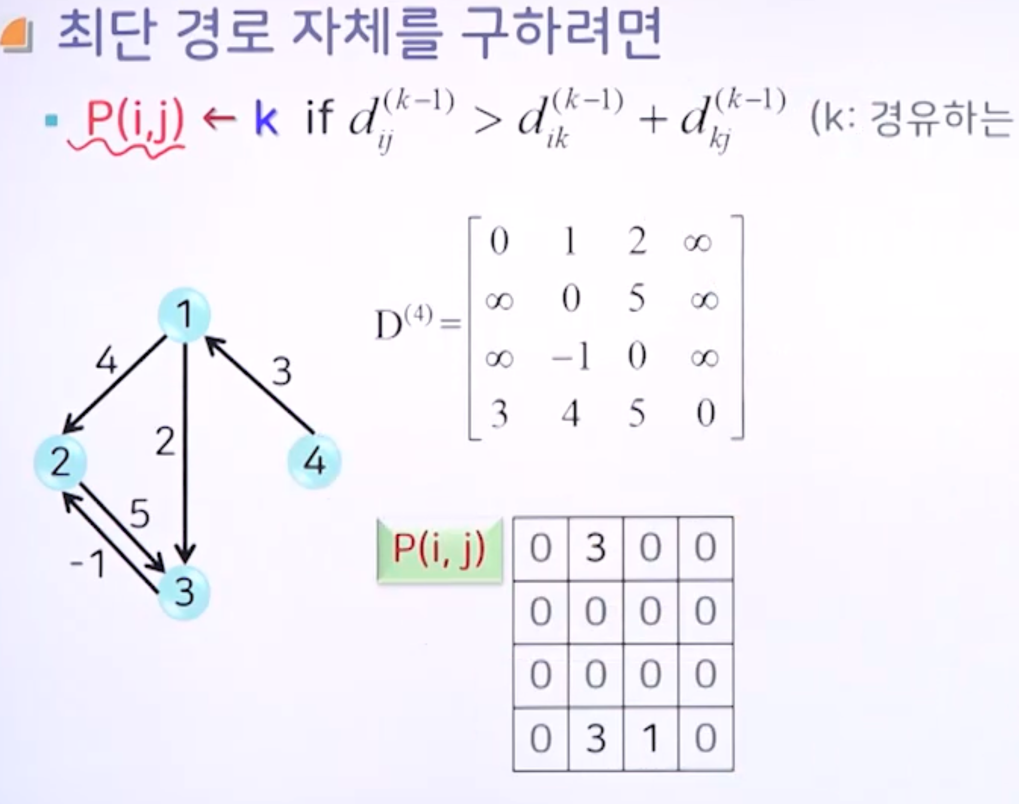 - D(i, j, 0) = dij^(0) = wij (1<=i, j<=n)