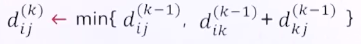 - D(i, j, k) = dik^(k) = min[dij^(k-1), dik^(k-1)+dik^(k-1)]