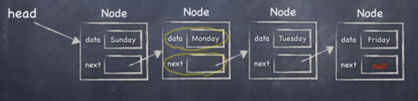 - head = newNode(새 노드의 링크필드)