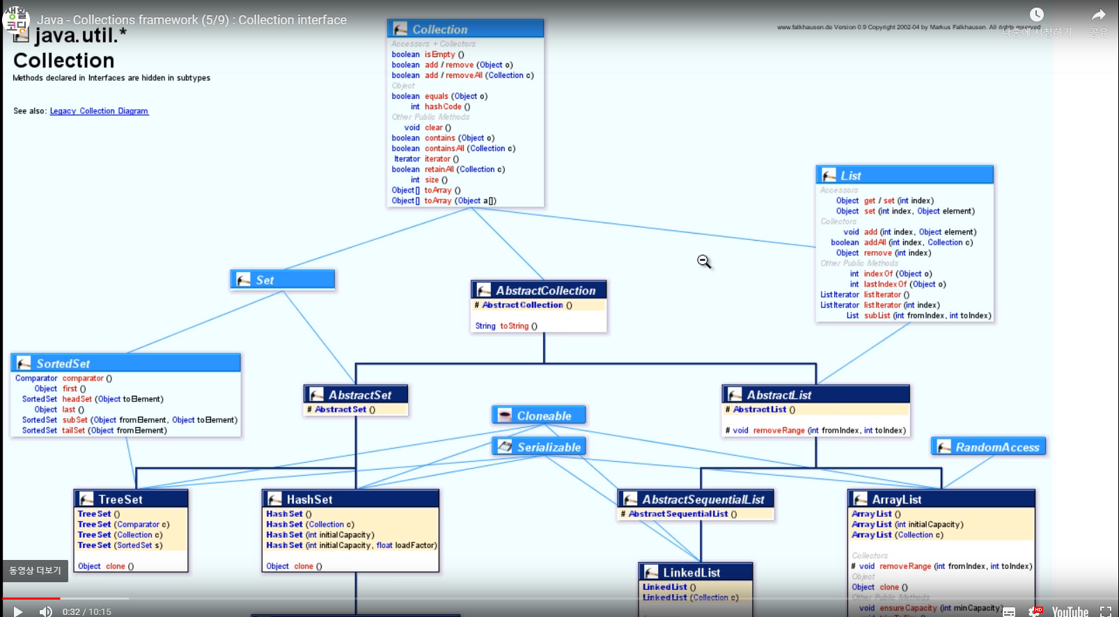 - 만약 Collection 인터페이스만으로 구현이 가능한 경우 collection 인터페이스를 사용하는 것이 맞음, 만약 List 인터페이스에서 제공하는 다른 메소드가 필요한 경우 List인터페이스를 상속받아 사용
