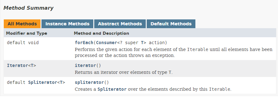 - 해당 인터페이스를 구현하면 객체를 통해 "for-each-loop"를 사용할 수 있다라고 설명하고 있다.